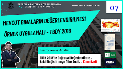 TBDY-2018'de Bölüm 15.5.3'te doğursal yöntemleri ile analiz yapılacak olan binalarda uygulama sınır kontrolleri yapılmaktadır. Bu çalışmamızda 5 (beş) maddeden oluşan bu sınırlar aşağıdaki linkte verilen eğitim çalışmamızda örnek çözüm ile açıklanmıştır.